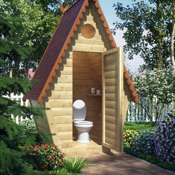 Туалет на даче должен иметь такие размеры: высота составляет 200 см, а ширина — 150 см, длина 180 см.