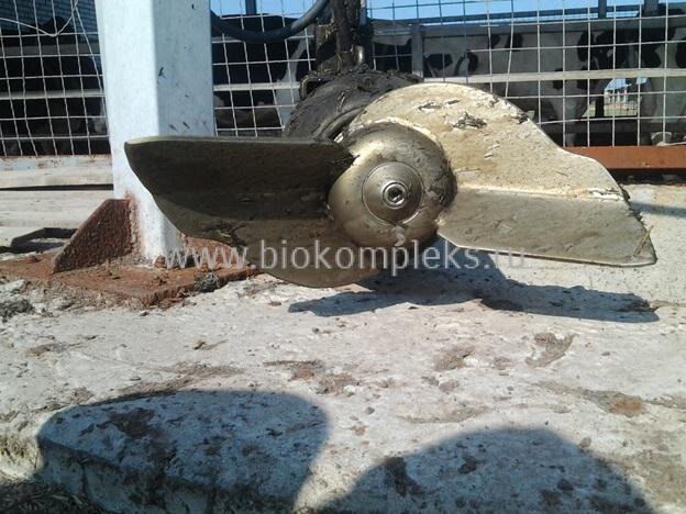 Сайт - www.biokompleks.ru Ключевые слова: миксеры для навоза, мешалки для навоза. Больше материалов на сайте «Биокомплекс» Компания Биокомплекс информирует о многолетней безаварийной работе миксера Cri-man TBM 15/4 в погружном состоянии. На рисунке фото миксер Cri-man, отработавший в погружном состоянии в КНС, наполненным сепарированным навозом КРС, 10 лет без единой поломки. Миксер был установлен в КНС для перемешивания навоза крупного рогатого скота. Режим работы миксера – 8/7/365, то есть восемь часов в день, каждые семь дней в неделе, каждый год. В таком режиме миксер Cri-man TBM 15/4 проработал почти 10 лет, в погруженном состоянии. На фотографии виден абразивный износ лопастей миксеров из-за присутствия песка в жидкой фракции навоза. При этом техническое состояние миксера без нареканий. Несмотря на агрессивную коррозионную среду –навоза, следов ржавчины и коррозионных очагов и процессов визуально не обнаружено. Компания Биокомплекс использует миксеры Cri-man в своих комплексных