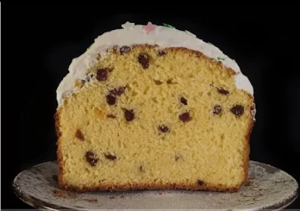 Самый быстрый в приготовлении кулич, очень нежный внутри, хрустящий снаружи. Кулич готовится без дрожжей. ИНГРИДИЕНТЫ ДЛЯ ТЕСТА: 2 Яйца. 150 г. Сахара. ( для сладкоежек можно взять больше) 1 ч.л Ванильного сахара. 50мл. Молока. 50 г. Растопленного сливочного масла. 180 г. Творога. 2 стакана муки. 2 ч.л Разрыхлителя. 50-80 г. Изюма. (Можно добавить орехов или цукатов) ИНГРИДИЕНТЫ ДЛЯ КРЕМА: белок от 1 яйца. 60 г. Сахара. СПОСОБ ПРИГОТОВЛЕНИЯ КУЛИЧА: 1>>Для теста нам понадобится 1 целое яйцо и один желток. Взбиваем желтки с сахаром и ванилью 5 минут. 2>>Добавляем молоко, растопленное сливочное масло и творог. Тщательно взбиваем. Затем добавляем изюм и перемешиваем. 3>>В отдельной миске, смешиваем муку с разрыхлителем и перемешиваем. (Муку нужно просеять, это нужно для того, чтобы наш кулич получился более пышным и нежным). Засыпаем муку смешанную с разрыхлителем к полученной смеси, и вымешиваем тесто руками. Долго вымешивать не надо. 4>>Смажьте форму сливочным маслом, и