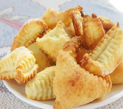 Печенье, приготовленное по нашему рецепту, просто тает во рту! Удивительно, но без яиц и разрыхлителя оно получается воздушным, а по вкусу напоминает слоеное. Со стола улетит за пару минут, готовьте побольше! Ингредиенты 2 пачки творога 150 гр. сливочного масла или маргарина 1 пачка ванилина 100 гр. сахара 200 гр. муки Щепотка соли 1 яйцо Приготовление Творог растираем с маслом, ванилином и соединяем с мукой. Тесто делим на три части, каждую часть раскатываем скалкой, обсыпаем сахаром и кладем друг на друга, затем снова слегка прокатаем. Большую заготовку нарезаем в форме печенья, треугольниками, ромбиками или так, как вам хочется. Выкладываем на противень, застеленный пергаментной бумагой, смазываем взбитым яйцом, посыпаем сахаром и отправляем в предварительно разогретую до 180 градусов духовку на 25-30 минут. Приятного чаепития! Подписывайтесь на наш канал, ставьте палец вверх, делитесь нами в социальных сетях, помогая нам развиваться дальше!