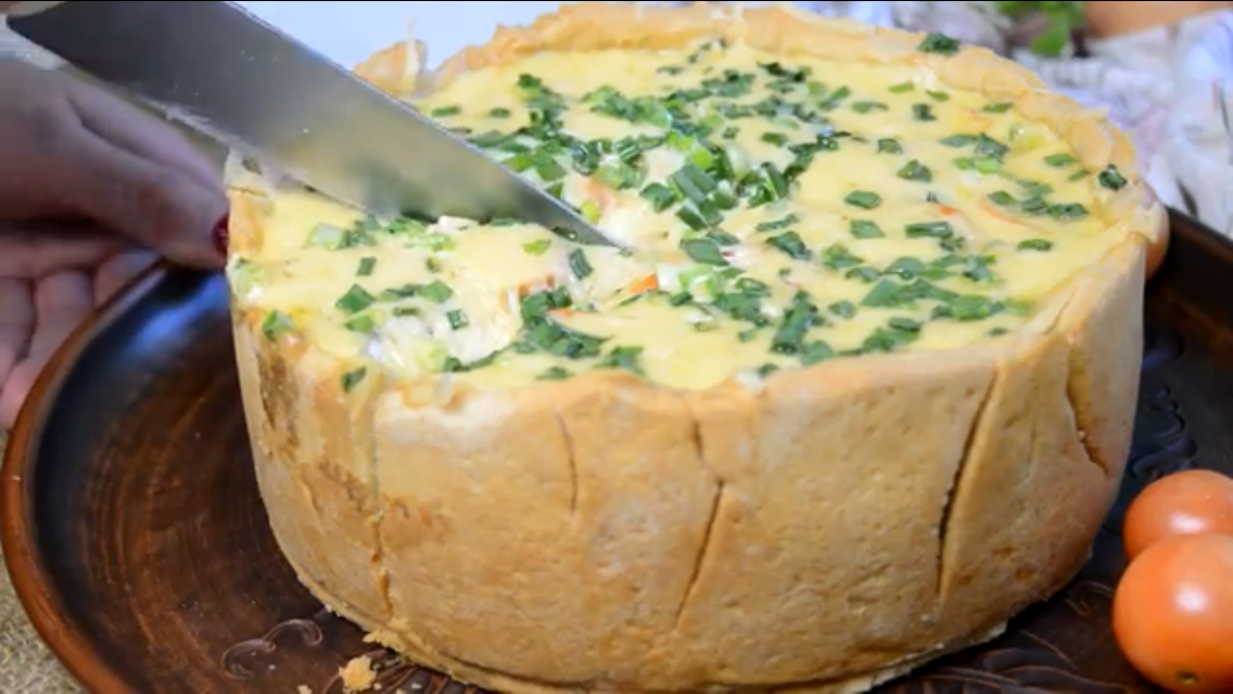 Представляем вашему вниманию рецепт очень аппетитного пирога с курицей и овощами.