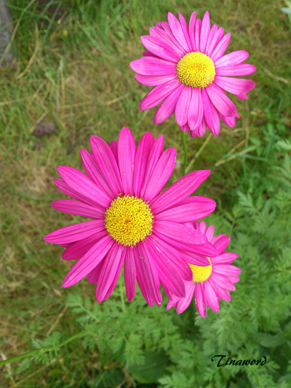 Для меня привычно чтобы ромашки были с белыми лепестками. А может это и не ромашки, тогда что это за цветы? Персидская ромашка - многолетнее травянистое растение в среднем высотой 50-70 см, с прямым стеблем и перисто рассеченными листьями разных размеров — у основания крупнее, а по стеблю мельче и уже. Цветет она соцветиями-корзинками диаметром от 3 до 6 см, состоящими из двух видов цветков — язычковых и трубчатых. Чтобы персидская ромашка не вырождалась, растения периодически делят и пересаживают, подсевают новые или подсаживают молодую рассаду. При таком постоянном внимании цветник долгое время не теряет своей привлекательности.