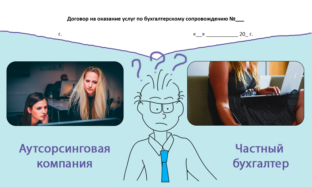 В компании проблема отсутствия специалиста решится просто ─ его заменят на другого сотрудника. Возможно, вы даже этого не заметите. Во втором случае сотрудника тоже заменят. При этом за результат работы специалиста отвечает компания, а вам остается только познакомиться с новым бухгалтером и начать с ним работать.