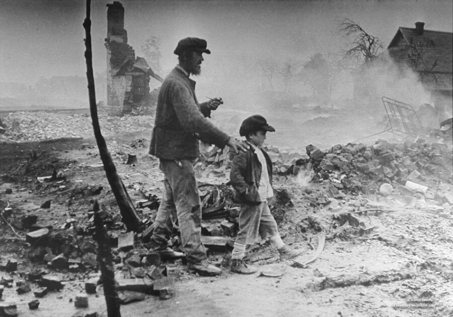 Израненный, обгоревший Иосиф Иосифович Каминский нашел среди трупов односельчан тело своего сына Адама и услышал его последние предсмертные слова... Что он говорил своему папе никто не знает, но бронзовая скульптура Непокоренного Человека - человека, вынесшего на своих плечах все тяготы войны, вставшим живым из огня - основа Хатынского мемориала.