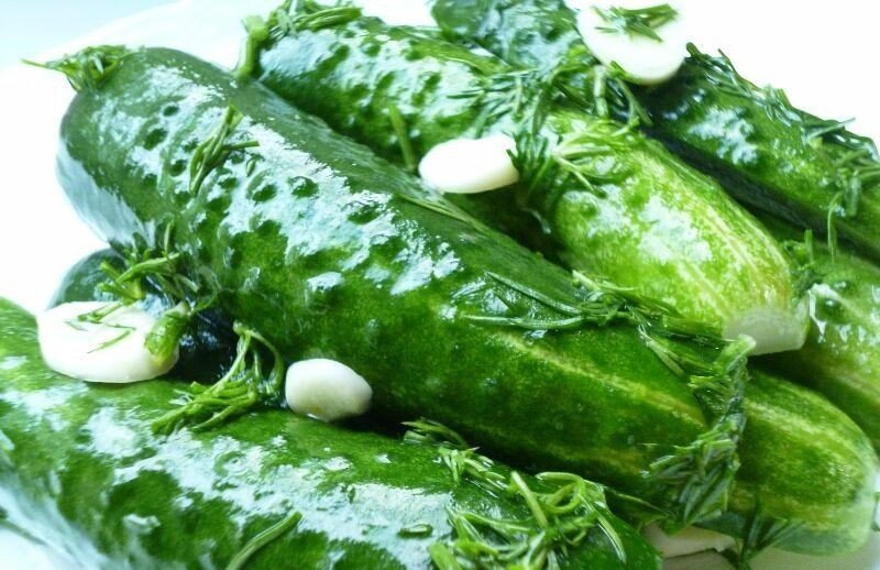 Без рассола. Ингредиенты: Огурцы 1 кг (маленькие) Соль 1 столовая ложка (без горки) Укроп по вкусу Чеснок 3 зубчика Полиэтиленовые пакеты 2 шт. Приготовление: Помыть огурчики, срезать кончики. Измельчить укроп. Очистить чеснок и измельчить. В полиэтиленовый пакет сложить огурчики, укроп, соль, чеснок. Затем пакет завязать. Для герметичности положить ещё в один пакет. Отправить пакет с огурчиками в холодильник на 6-8 часов, периодически доставать и трясти. Приятного аппетита.