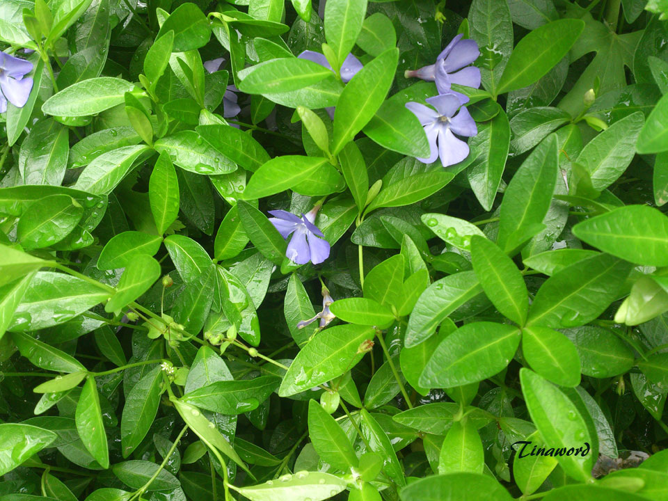 Вот такой оказывается этот барвинок, вечнозеленый, маленьких размеров кустарничек с ветвистыми, лежачими и прямостоячими стеблями. В. И. Даль в своём Словаре живого великорусского языка приводит для барвинка малого местные русские названия могильница и гроб-трава (очевидно, что они отражают использование этого зимнезелёного растения для украшения могил). У нас барвинок растет у забора и покрывает землю ровным ковром Это тоже барвинок. Этот растет у нас под грушей, он не такой разросшийся.
