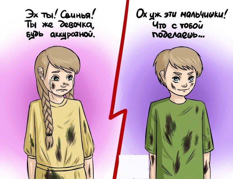 Но стереотипы это не самое страшное! Намного ужасней,когда людей начинают дискриминацию по гендерному признаку. Начинают диктовать людям как себя вести,чем заниматься,где жить и т.д. И при этом если ты не попадаешь в эти "нормы"-становишься изгоем. Ужасно!