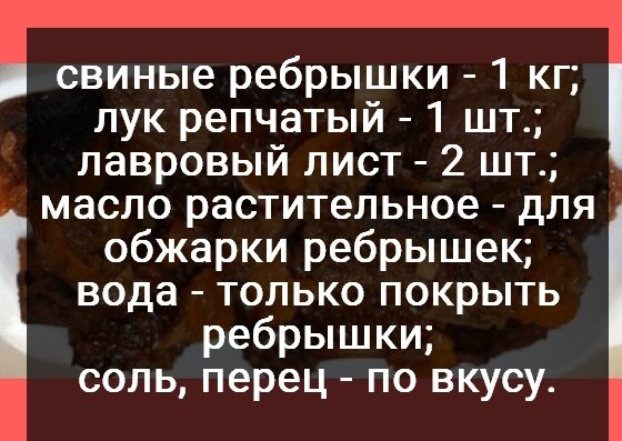 Здравствуйте Мои Хорошие!!! Очень вкусные и нежно тушеные ребрышки. От такого вкуса вся ваша семья придет в восторг!!! Специи я использую самые обычные, Вы можете на свой вкус! Гарнир придумывайте так же сами, и овощи, и картошечка, и рис и т.д. Ингредиенты: Способ приготовления: 1. Хорошенько промоем ребрышки и обмакнем бумажным полотенцем чтобы удалить влагу. 2. В сковородку нальем масло и немного обжарим ребрышки до красивого цвета. 3. После обжарки добавим к ребрышкам все специи как рецепте. 4. Добавим мелко порезанный лук и нальем воды немного, чтобы только скрыть ребрышки для тушения. 5. Уменьшим огонь до минимума и закроем крышкой. Тушим 1,5-2 часа. Достаем и подаем с гарниром или овощами! Приятного Аппетита!!! Угощайте друзей, Родных и Близких!!! Подписывайтесь, Не забываем ставить класс))) Заходите ко мне по чаще!!!