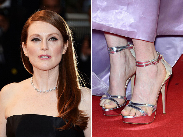 Редкая звезда не любит сексуальные сандалии и ажурные шпильки. Как правило, даже самая невзрачная начинающая актриса, в красивых туфлях начинает выглядеть просто сногсшибательно, НО бывают и исключения! Эти знаменитости совершили непростительную ошибку во время выбора обуви. Просто посмотрите, как неудачный выбор обуви может повлиять на общую картину! 1. Джулианна Мур — является одной из наиболее стильных актрис. Но даже с ней случился подобный казус во время Каннского кинофестиваля 2. У Кейт Мосс много модных проколов. А вот один из них! 3. Немного распухшая во время беременности Ким Кардашьян 4. Несчастные мизинчики Бритни Спирс на The Hollywood Beauty Awards 5. Видимо не захотела Кэмерон Диас расставаться с понравившимися ей туфельками 6. Такие вещи происходят не только на красной дорожке… Софи Монк в такой обуви пошла на вечеринку 7. Это ноги очень красивой актрисы Тии Сиркар. Босоножки, должно быть, причиняли ей нереальную боль! 8. Ой! Эти полоски должны были оказывать на ноги Миш