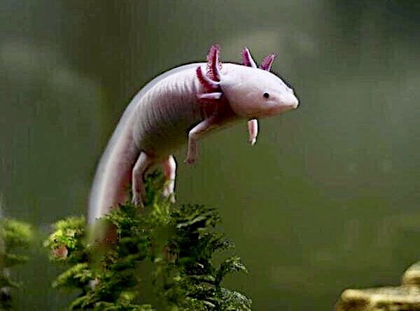 Аксолотль - личинка амбистомы, чья форма головастика является оконченой. То есть, аксолотль - это головастик, который не выростит. Подводной ящерицей его называют за весьма необычный внешний вид: четыре подвижные лапы с "пальцами", хвост, подобие плавника на спине и красивые "рожки", которые будто бы украшены перьями. На ощупь аксолотль очень мягкий и гладкий. Этого зверька легко травмировать, поэтому долго держать в руках его не желательно. Помимо нежной кожи он очень чувствителен к теплу и не выносит его, поэтому температура рук человека может быть губительна. Эти существа бывают различных расцветок, но, в основном, чёрные и белые. В дикой природе белые особи очень редки, так как они легко становятся добычей более крупных хищников. Важно написать и о том, что аксолотль - домашнее животное, весьма распространенное в нше время. Питаются они мотылем или гаммарусом, можно прикармливать сырым мясом. Зверёк может привыкнуть к человеку, который его кормит, узнавать его. Но вот с рыбками