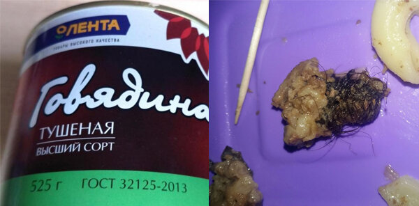 Кусок шерсти с кожей из тушенки от «Ленты» ожидал сибиряка в макаронах по-флотски