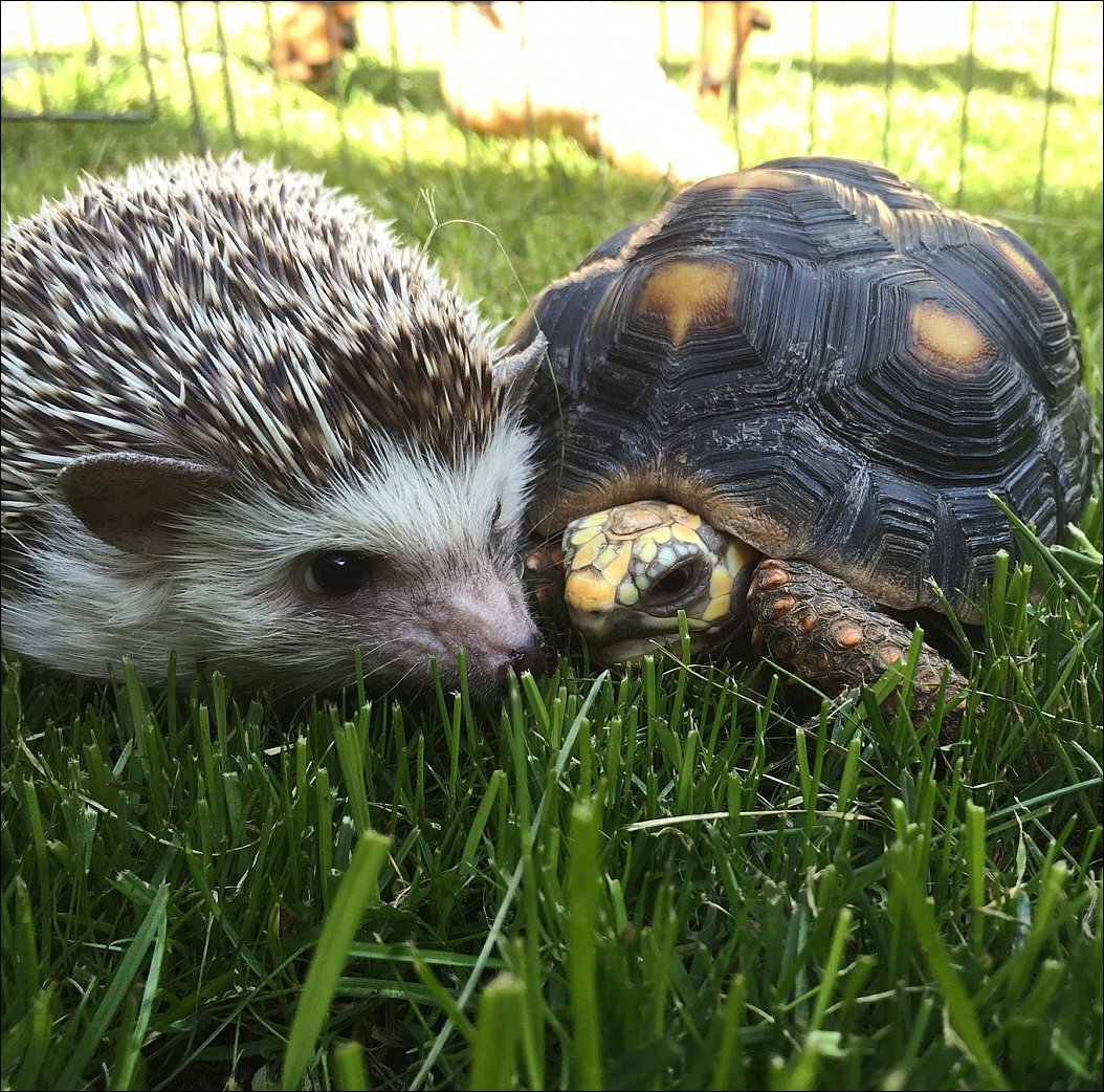 И я тут же заторопилась к блюдцу, но, подойдя поближе, увидела незнакомое существо, темное, круглое и колючее, которое угрожающем фыркало на меня. Видимо, угощение, на которое я посягнула, предназначалось ему. От неожиданности и испуга я тотчас втянула голову и лапы в панцирь. Так мы и сидели друг против друга: я, спрятавшись в свой верный панцирь, и он, свернувшись клубком.