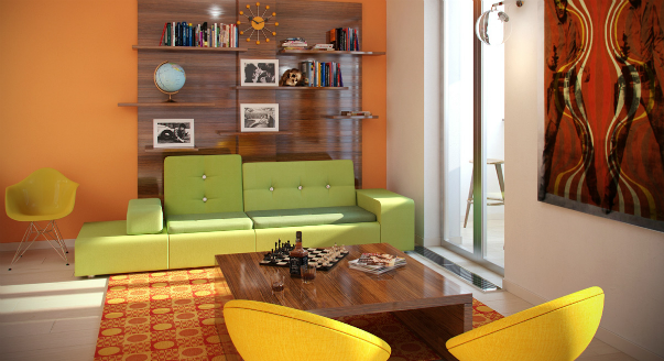 В отличие от семейных, холостяки обустраивают свое жилье совсем по другим законам. Вместо деления на комнаты и комнатушки, отводят большую часть квартиры под зону для вечеринок, а все оставшееся пространство — под спальню с кроватью типа «сексодром». Сведения о квартире: квартира свободной планировки площадью 100 кв. м. в одном из элитных ЖК Москвы. Владельцы квартиры: молодой холостяк. Пожелания клиентов: создать зону для вечеринок, интерьер в стиле 60-х. План квартиры-студии. Поскольку изначально квартира была свободной планировки, серьезных сложностей с открытым пространством не возникло, а деление на общественную и приватную зоны было обеспечено единственной несущей стеной в квартире. Зона для вечеринок включает в себя объединенное пространство прихожей, кухни, гостиной и двух балконов, один из которых стал курилкой, а второй — библиотекой. Круглый гостевой санузел практически в центре этого пространства — это и уход от стандартных коридоров, и «фишка». Кухню сделали миним