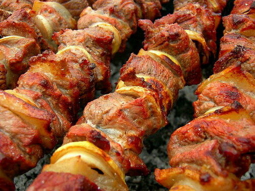 Шашлык из баранины, несмотря на свои восточные «корни» имеет и русскую интерпретацию, которую тоже могут взять себе на вооружение искусные шашлычники. Вообще баранина сбалансирована по содержанию жирности, однако прежде чем задумать из него невообразимое по вкусу блюдо стоит знать, как выбрать правильную баранину. Цвет мяса должен быть нежного неярко-красного цвета. Темный цвет лишь у мяса старого животного. Специфический запах, присущий баранине, тоже является моментом, на который нужно обратить особое внимание. Он не должен быть ярко-выраженным, поскольку только старое мясо обладает резким и не совсем приятным ароматом. Итак, рецепт шашлыка из говядины. Перво-наперво готовится маринад. Для этого русско-домашнего способа приготовления шашлыка потребуются: - сочные томаты примерно 4 шт., - на 2 кг мяса можно взять 5 средних луковиц, - один пучок кинзы, а если не нравится, то петрушки, - 5 ст.л. соевого соуса, - приправу хмели-сунели, - несколько столовых ложек по