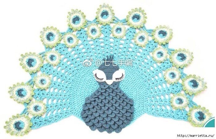 Роскошного павлина можно связать крючком и декорировать им, к примеру, интерьерную подушку. Схемы вязания павлина - прилагаются.