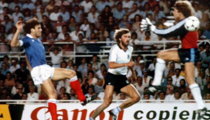 Тренер германской команды выпускает последний резерв, травмированного Румменигге (97'), а через минуту миниатюрный Жиррес забивает третий мяч (98'). Казалось бы, игра для Франции сделана. В это поверили почти все, включая игроков французской команды.