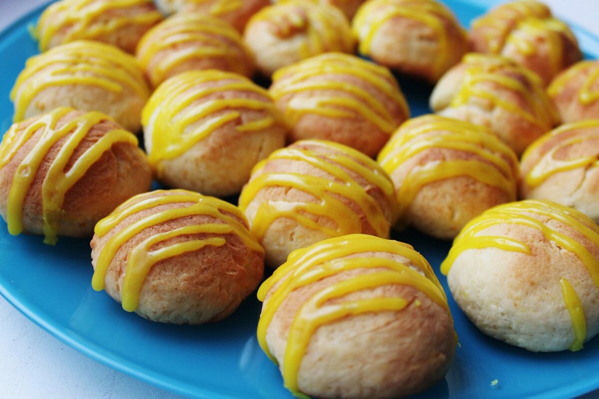Заворачиваем тесто в пищевую пленку и убираем в холодильник на 20-30 минут. Из охлажденного теста я скатала 15 колобков.