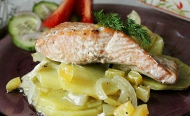 Простое и аппетитное блюдо — кета с картошкой в духовке