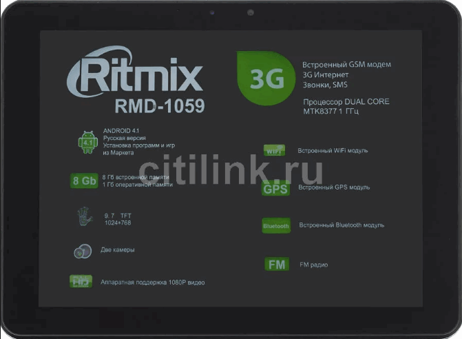В феврале 2017 года купил планшет Ritmix RMD-1059. Диагональ экрана 9,7 дюйма. Планшет покупался в подарок ребенку на день рожденья. А времени на выбор подарка не было. Купил этот планшет в магазине Ситилинк. В Ситилинке так построена система продажи товаров,что посмотреть покупаемый товар ты не можешь. Нужно сначала оплатить товар. Затем пройти на стойку выдачи товара и там уже получить. И только потом можно увидеть "кота в мешке". При внешнем осмотре планшет меня удовлетворил. А на тестирование конечно нужно больше времени и так сразу не поймешь что ты покупаешь. Ребенку подарил этот планшет на 5 лет. Это у него был первый планшет. Он и этой игрушке обрадовался. А вот меня конечно при более детальном изучении данный планшет разочаровал. Экран оказался очень тусклым. Цветопередача никакая. Сам планшет постоянно тормозит и глючит. Плюсом ко всему батарея как-то странно начала себя вести. Аккумулятор начал разряжаться все быстрее с каждым днем. Через 2 месяца работы планшет практич