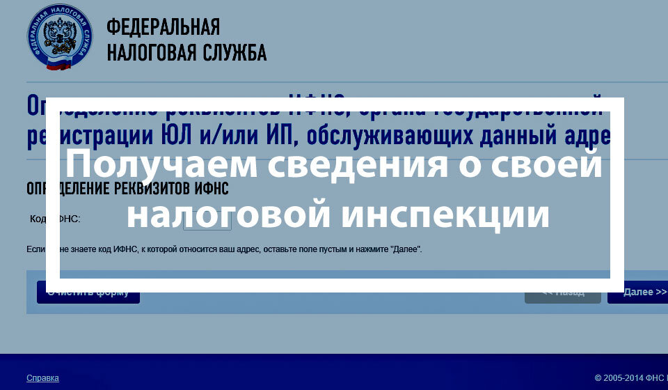 Сведения из налоговой инспекции и код ИФНС по адресу
