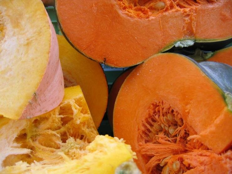 _____________________________________________________________________ Тыква также будет хороша в вареном виде - в супе вместо картофеля и в диетическом салате в дуэте с яйцом. Любителям похрустеть можно приготовить овощные чипсы и цукаты из тыквы. Специально к празднику Пасхи можно побаловать домашних рецептом тыквенного кулича. Ну и классический рецепт тыквенного джема с апельсином и лимоном можно готовить как из свежего урожая тыквы, так и после долительного зимнего хранения. Мякоть тыквы можно исползовать для приготовления домашней тыквенной маски. Светлана Самойлова
