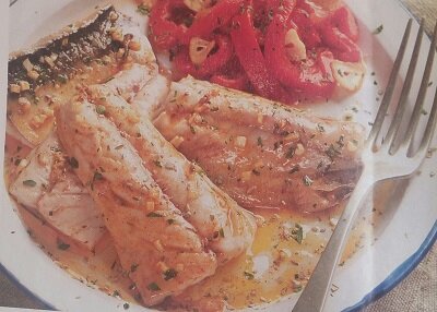 Здесь будет описан необычный рецепт очень вкусной рыбы . ПОНАДОБИТСЯ: 4 скумбрии,разделать на 8 филе. 4 зубчика чеснока, 3 красных перца, веточку петрушки, 1 ч,л.орегано, 1 ч,л.перца красного сладкого молотого, 1 лимон, масло,соль,перец черный молотый. Приготовление: Сделать из рыбы филе. На дно формы для запекания в духовке положить фольгу, сверху филе рыбы и полить маринадом. Для маринада:мелко нарезать 2 зубчика чеснока,добавить орегано,нарезанную петрушку, красный молотый перец,соль,масло и сок лимона.Все хорошенько перемешать и залить рыбу,оставить мариновать минут 30. Красный болгарский перец вымыть,высушить,положить на противень( положив на дно фольгу) и в разогретую духовку на 50 мин.,затем дать остыть,снять кожу,вынуть семена и порезать соломкой,добавив 2 зубчика порезанного дольками,заправить маслом и еще на 4 мин в духовку. Маринованную рыбу поставить на 10 минут в духовку при самой высокой температуре. Сервировать с красным перцем. Приятного аппетита! Подписывайт