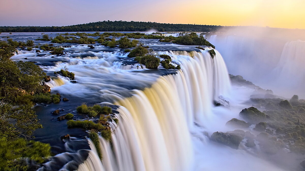 На границе Бразилии и Аргентины расположен Национальный парк «Игуасу», площадью в 55 тысяч гектаров, в котором можно увидеть одно из немногих мест Земли, созданное природой, поистине захватывающее зрелище и одно из чудес света, объект Всемирного наследия ЮНЕСКО - систему водопадов, форма которых напоминает полумесяц.