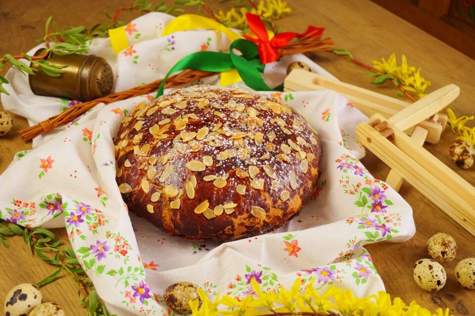 Это пожалуй, самая популярная выпечка в Чехии на Пасху. Печется из дрожжевого теста, не такая сладкая как наши куличи. Раньше мазанцы пекли разные, например для батраков и бедных могли просто из теста. Сахар был дорогой, так хозяйки добавляли сладкие жирные сливки. А вот для тех, кто побогаче, добавляли изюм, цукаты и орехи. Сверху мазанцы, как правило, украшают миндалем, как и рождественские Ваноцки ( то же самое, только на Рождество и не в форме булки, а плетеное). И наверху делают надрез в форме креста.