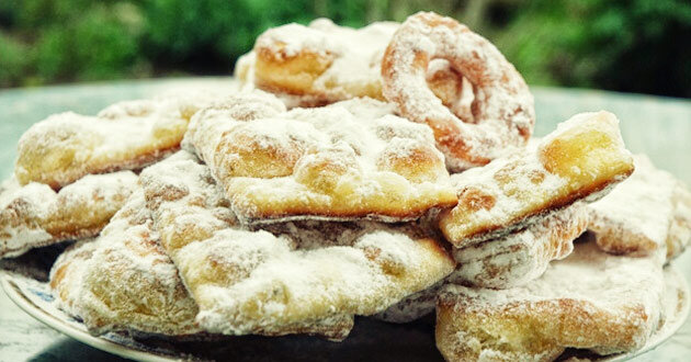 А вот соседка моя пекла "Хворост", раскатывала тесто и разрезала обязательно зубчатым колесиком, тогда получалось очень красиво. Еще один секрет - тесто делалось на водке. И обычно без Хвороста не обходился ни один праздник, даже на мою собственную свадьбу их пекли несколько сотен ( ох, как давно это было!) Рецепт: