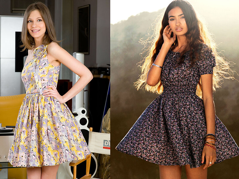 Платье с развевающейся юбкой выглядят красиво и элегантно, эта модель может иметь огромное количество вариаций: с короткими или длинными рукавами, на резинке, с молнией и так далее. Она имеет облегающий верх и достаточно пышный низ, в таком наряде замечательно смотрятся девушки с любым типом фигуры. Самостоятельный пошив его своими руками вполне возможен даже для начинающих швей, хотя и придется потратить некоторое время. Тем, кто не слишком уверен в своих силах можно выбрать версию на резинке, ведь ее легче подгонять по фигуре. Максимально удлинив юбку мы получим платье в пол, ее лучше сделать менее пышную, например полусолнце.