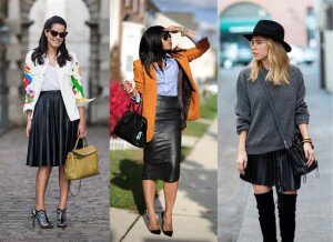 При помощи кожаной юбки можно создать разнообразные образы: от романтического до делового. Например, кожаная юбка карандаш в сочетании с рубашкой или водолазкой поможет создать утонченный, но в то же время довольно строгий образ.