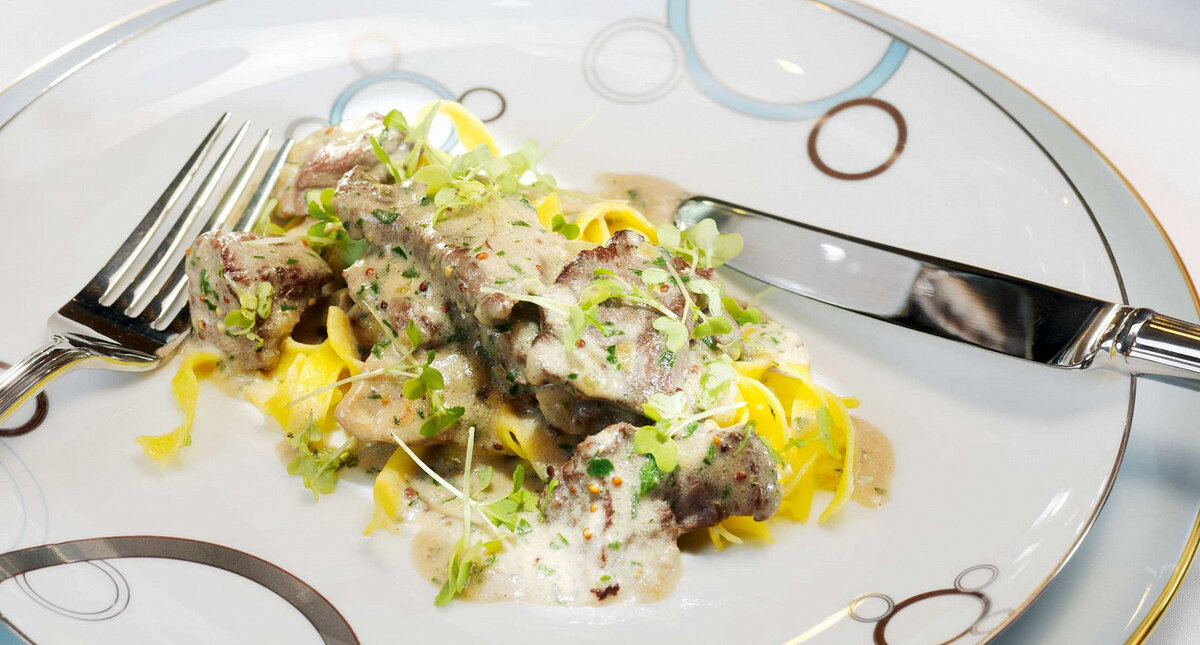 А на гарнир к бефстроганову можно подавать что угодно — гречку, пасту, любую картошку».