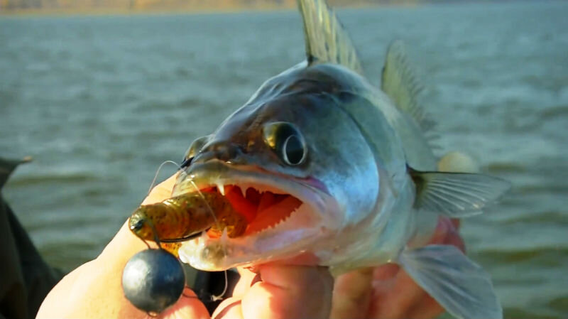 Ловля судака весной отличается тем, что в это время нередко попадаются самые крупные экземпляры. Эта особенность присуща и осеннему времени, причём в позднюю осень наиболее часты поклёвки трофейных судаков. Но вернёмся к весне. Уже с ранней весны возможна ловля судака. Этот преднерестовый период имеет свои особенности. С начала половодья, в разгаре его и в конце половодья наиболее успешно применяется джиговая оснастка. Успешности рыбалки может помешать только излишне мутная вода, что весной не редкость. В первую очередь используется классика силиконовых приманок — твистеры и виброхвосты. Также довольно успешными могут быть и поролоновые рыбки. Но весной «поролонки» несколько уступают более юрким виброхвостам и твистерам. Икряной весенний судак не очень охотно хватает в этот период крупные приманки, а в некоторых случаях вообще отказывается брать на них. Это после нереста он будет жадно набрасываться на крупные блёсны и силиконовые приманки, но весной до нереста лучше использовать обман