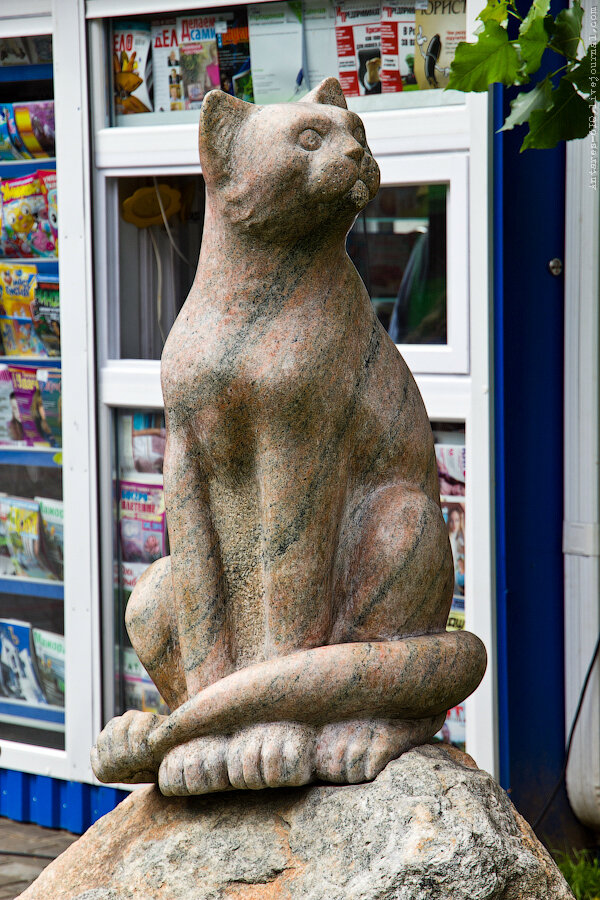 Рядом с кукольным театром сидит вот такая кошка. В Могилёве оказалась очень развита городская каменная скульптура.