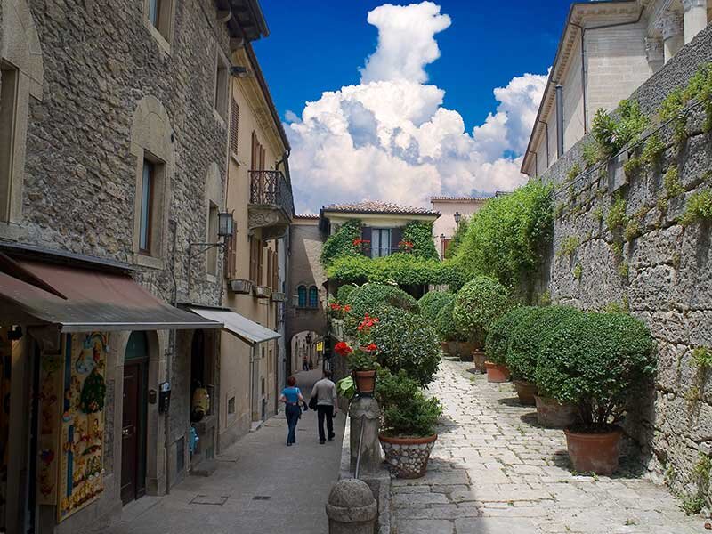 Сан-Марино – одно из крохотных государств мира. Отправиться сюда из Римини «сам Бог велел». Страна находится всего в 20 км от города. Сюда легко добраться на автобусе. Что посмотреть? Сан-Марино находится на территории Италии, на склоне горного массива Монте-Титано, на высоте чуть более 700 метров над уровнем моря. Занимает всего 60 квадратных километров (находится на третьем месте после княжества Монако и Ватикана). Более 80% территории – скалы. Плодородные почвы занимают примерно 16%. Столица государства – город Сан-Марино, расположенный чуть ниже вершины горы. Исторический центр страны и гора Монте-Титано внесены в список всемирного наследия ЮНЕСКО. Это излюбленное место для туристов со всего мира. Несмотря на крошечные размеры, в Сан-Марино есть на что посмотреть. Отправляясь сюда, обязательно побывайте: — в башнях, которые расположены почти на вершине горы; — во дворце Палаццо Публико; — в Базилике-дель-Санте – главном храме страны; — в Галерее современного