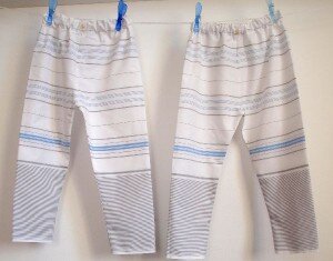 4. Складываем штанины и сшиваем их. 5. Выполняем средний шов, который соединяет штанины. 6. Вставляем в пояс резинку. 7. Обрабатываем низ штаников. Работу с пижамными штанишками мы закончили и теперь заслуженно можем собой гордится.