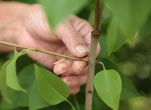 Заготовка должна проходить обязательно в период цветения сирени, а также после того, как оно подошло к концу. Длина нарезки установлена на уровне 15 см, удаление листиков не предусмотрено. До момента высадки заготовленный материал правильно будет хранить аккуратно разложенным и прикрытым полиэтиленовой пленкой.