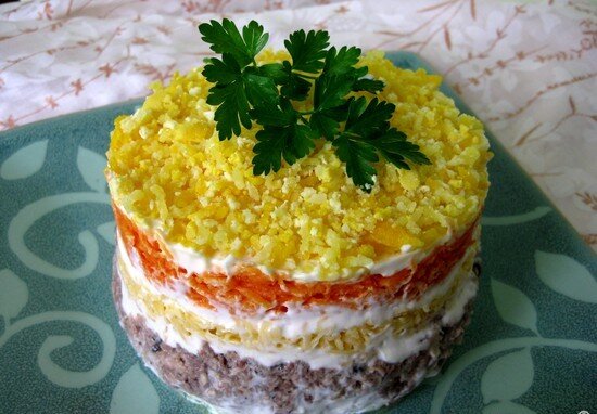 Этот вкуснейший салат съедается самым первым. Еще бы! Он получается очень аппетитным, вкусным - гостям нравится! Попробуйте приготовить и вы. Приготовление: Итак, для этого салата нам потребуется банка шпрот. Достаем рыбку, разминаем вилкой и выкладываем на дно салатника. Сверху смазываем майонезом. Кстати, майонезом промазываем все слои. Второй слой - порезанные яйца, свареные вкрутую. Нам потребуется 4-5 шт. Третий слой - 2 вареных картофеля, натертые на терке. Четвертый слой - 2 моркови, натертые на терке. Пятый слой - одна мелко порезанная луковица, Шестой слой - 50 гр натертого на терке сыра. Сверху смазываем майонезом. Можно посыпать раскрошенным яичным желтком, украшаем зеленью. Оставляем на пару часов, чтобы салат пропитался и подаем на стол. Приятного аппетита! Если вам понравился рецепт - ставьте лайк, делитесь в соцсетях, подписывайтесь на канал!