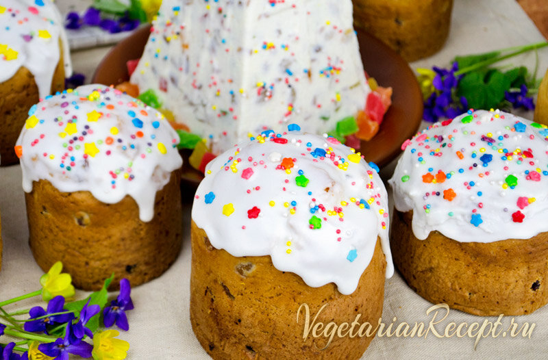 Если Вы не едите яйца, то этот рецепт как раз для Вас! Когда я перестала употреблять в пищу яйца, я переделала наш семейный рецепт куличей, по которому пекла моя бабушка и потом мама, и Вы знаете, без яиц получилось не хуже! Наши куличи были самыми вкусными среди всей родни и знакомых, поэтому мы пекли их очень много, чтобы хватило на всех родственников и нам на всю неделю. 😁 Ингредиенты: Тесто: Глазурь: или любая другая Рецепт: 1. В теплое молоко добавить дрожжи, 4 ст.л. сахара и 1 стакан муки (из общего количества). Перемешать и оставить в тепле на четверть часа. 2. В глубокую емкость налить предварительно растопленное масло и сметану. 3. Добавить опару, которую мы сделали в 1-м пункте. 4. Насыпать весь оставшийся сахар, а также соль и ароматизаторы, которые Вы будете использовать. Добавить промытый изюм. 5. Насыпать постепенно всю оставшуюся муку и растительное масло, вымешивая руками, смазанными этим же маслом, пока не получится очень мягкое тесто. 6. Накрыть емкость с тестом