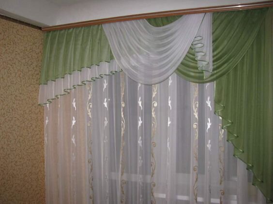 В статьях часто встречается категорический запрет на ламбрекены - "Откажитесь!". Предлагаю разобраться в том, как ламбрекены могут испортить впечатление от интерьера. Ламбрекен - декоративный элемент, закрывающий карниз. Его выбор зависит от стиля интерьера, формы окна и ткани. Ламбрекены можно увидеть в малогабаритных квартирах и загородных особняках и, честно говоря, мы согласны, что в большинстве случаев это будут не удачные примеры. Предлагаю разобраться на плохих и хороших примерах. Дешевая ткань и ламбрекены-сваги и перекиды Сваги - выкроенные по косой нити полукружия с чётко заложенными складками, а перекиды - полотнище ткани, переброшенное через штангу карниза и свисающее по бокам самопроизвольно образующимися складками. Мы видим работу, которая по стилю противоречит современному интерьеру: Этот вариант мне напоминает костюмированную новогоднюю вечеринку, где окно - девочка-снежинка. Только девочки-снежинки после утренника переоденутся. Псевдо-классика Можно встретить