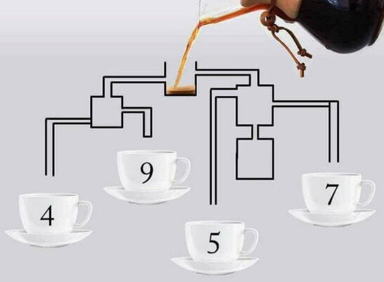 Сегодня впервые на моем канале - не шахматная головоломка. Но она мне очень понравилась, и я не смог пройти мимо. В любом случае, эта задачка тренирует логику и наблюдательность, а значит пригодится и всем любителям шахмат. Посмотрите внимательно на схему выше. Вопрос: в какие чашки попадет кофе и в какой последовательности? Не спешите с ответом - он не такой уж тривиальный, как кажется на первый взгляд. Ответ вы найдете под картинкой. Кстати, ответ на задачку - вполне в духе Эйнштейна, который огромные сложные теории зашифровывал в простые уравнения. Ответ: кофе попадет только в чашку под номером 5. У остальных чашек в трубах есть перекрытия. Если вам понравился новый формат нешахматных головоломок - ставьте лайки 👍, так я пойму, что такие задачи вам тоже интересны и подготовлю новые. Спасибо, что были с нами! Подписывайтесь на наш канал, чтобы не пропустить новые задачи!
