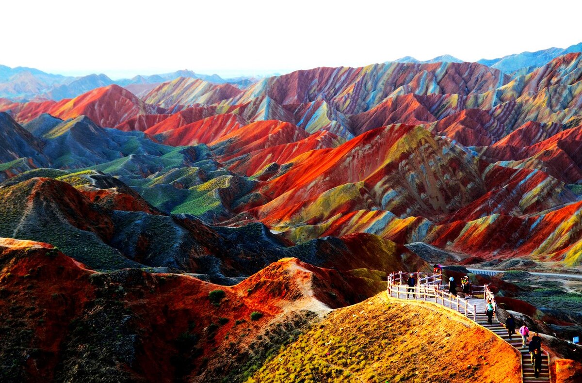 С каждым новым путешествием все более явной становится простая истина: самые красивые вещи в этом мире созданы не руками человека, а природой. Наша планета – самый искусный создатель, который только может быть. Подтверждением этого являются цветные скалы Чжанъе Данксиа в провинции Ганьсу, Китай. Красота этих мест на фотографиях кажется неестественной. От увиденного этого фантастического пейзажа захватывает дух, хочется назвать эти красоты неземными, созданными для фильма о других мирах. Сверху горы похожи на ярко раскрашенный разноцветными красками мягкий и пушистый плед, укрывший Землю, а горы — складки на нём. Природа нашей планеты способна создавать такие великолепные места. Цветные скалы Чжанъе Данксиа — красочные горные формирования Геологического парка в провинции Ганьсу, Китай. Эти горные образования — уникальный тип петрографической геоморфологии, которая может быть найдена только в Китае. Цветные скалы состоят из красных песчаников и конгломератов в основном Мелового периода.