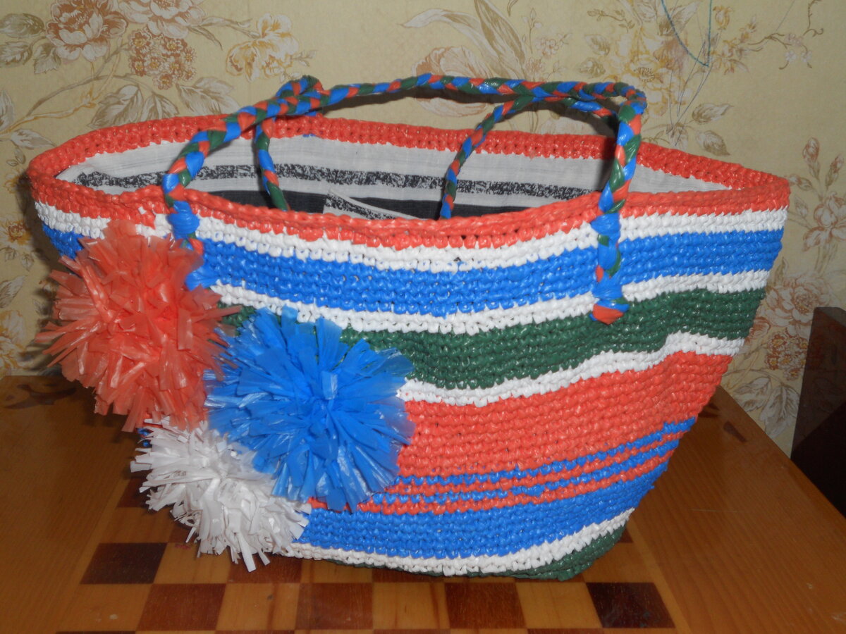 Какие ассоциации у Вас возникают, когда Вы слышите слово пакет - это,конечно, положить хлеб,принести продукты,вынести мусор. Но посмотрите, какие изделия можно связать из пакетов. Не плохо смотрятся эти корзиночки-правда?! С такими корзинками не стыдно сходить на рынок или магазин, на пляж.