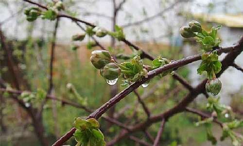 Весенние заморозки наносят огромный вред черешне и сказываются на плодоношении. Дерево плохо переносит перепады температур, например, если днем +10 °C, а к ночи наблюдается резкое похолодание. Ночные заморозки приводят к тому, что цветочные почки гибнут, а заморозки ниже -2 °C опасны и для вишни, которая считается более устойчивой. Но если вопрос с опылением можно решить, то помочь черешне справиться с заморозками проблематично.