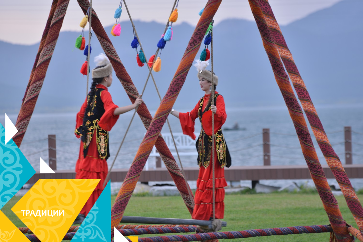 Чтобы отобразить рывок от привычного «среднего мира» к небу, казахи устанавливают на время праздника весны качели алтыбакан. Раньше эти качели предназначались для общения молодых людей – девушки и юноши могли знакомиться друг с другом и поддерживать общение, встречаясь на этих воздушных качелях. Так алтыбакан стали символом весны, беззаботной молодости, первых знакомств и романтики.