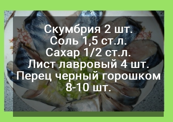 Здравствуйте Мои Хорошие!!! Очень приятно и по особенному будет вкусно, если рыбку мы засолим сами. И знакомыми для нас специями, на свой вкус, это самая лучшая рыбка. В скумбрии очень мало косточек, и кушать ее как закуской на столе самый лучший вариант. Я такую рыбку готовлю всегда и очень часто!!! Для соления нам понадобиться 5 самых простых продуктов!!! Ингредиенты: Способ приготовления: 1. Чистим рыбку, удаляем внутренности. 2. Промываем очень хорошо и убираем голову. 3. Режем на кусочки порционные на ваш вкус. 4. Отдельно в тарелке смешаем все специи как в рецепте. 5. В эту же миску выложим кусочки рыбы и придавим тарелкой или крышкой. Уберем в прохладное место и спустя 10-11 часов достаем! Как Вы уже заметили рецепт очень простой! Приятного Аппетита!!!! Угощайте друзей, Родных и Близких!!! Подписывайтесь, Не забываем ставить класс))) Заходите ко мне по чаще!!!