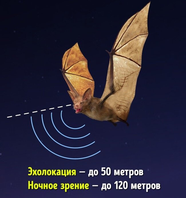 На самом деле: хотя для ориентации в пространстве летучие мыши используют эхолокацию, при определенном уровне освещения мыши ориентируются с помощью зрения.