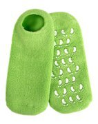 В серии Beauty Style появились носочки и перчатки с активным гелем с экстрактом зеленого чая. Действие чудо-новинки таково: Вы надеваете носочки или перчатки на чистую кожу ног или рук соответственно на ночь или днем, если уверены, что в ближайшее время не будете ничем заниматься. Изделия выполнены из ткани (микрофибра) и пропитаны специальным гелем, содержащим как увлажняющие, так и питательные компоненты. Благодаря входящим в состав геля экстракту авокадо, виноградных косточек, оливы, сои и, конечно, зеленого чая, а также плотному соприкосновению с кожей при ношении, носочки и перчатки в буквальном смысле лечат микротрещины, не допуская дальнейшего разрушения кожи. Размер изделий универсален, так что они подойдут любому, кто нуждается в оздоровлении кожи. Одна пара рассчитана на 50 применений. Изделия можно стирать в теплой воде. Их применение очень эффективно. Такие носочки или перчатки станут великолепным подарком маме или бабушке.