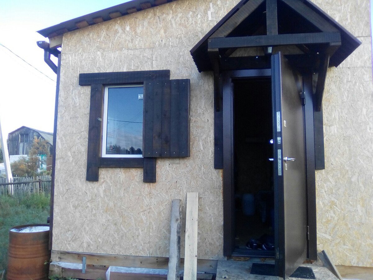 Ставни решено было делать по нескольким причинам. Первая, конечно -снижение теплопотерь через окна. Через окна из дома уходит достаточно много драгоценного тепла. Существует несколько способов его сохранить: Дом без окон - идея заманчивая, дешево опять же, но придется постоянно жечь электричество. Да шучу я. Какой еще дом без окон?)) Окна с двухкамерными стеклопакетами очень дорогие. Даже глухое окно с пакетом из трех стекол стоит внушительных денег. Ставни для нас - оптимальное решение. Можно сделать самому из обрезков или купить какой-нибудь тридцатой или двадцать пятой доски. Я, например, купил. Вторая причина установки ставней заключается все в той же безопасности. Ставни, конечно же, не спасут дом от воров, но они продлят время проникновения в помещение. Всего я решил сделать 5 ставней. Одну на узкое окно и по две на широкие окна. Начнем с первого, узкого окна. Конструкция предельно проста: несколько досточек в ряд перевязать сверху и снизу досточками пошире, а по бокам пустить