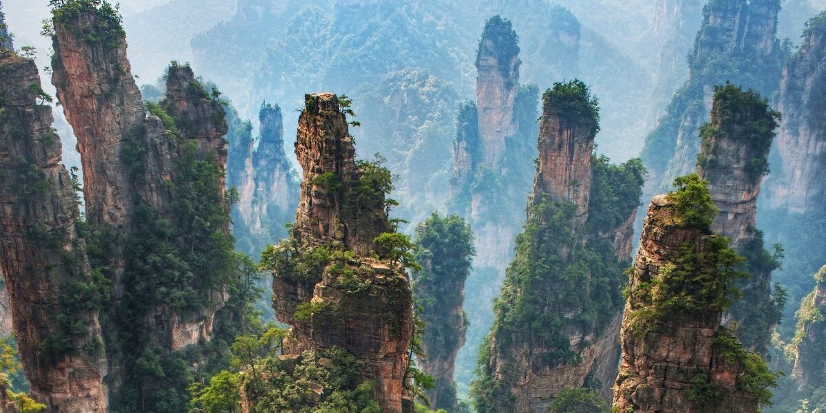 Увидев эти горы невозможно поверить в то, что это еще одно великолепное создание природы. Здесь из земли вырастают необычные горные стержни, которые будто связывают землю и небо. Располагаются парящие горы в Китае, являясь частью национального парка Чжанцзяцзе, и называются Улинъюань. Скалы привораживают и поражают с первого взгляда. Свое название гора Тяньцзы получила от прозвища человека по имени Сян Дакунь, племени Ян, который давным-давно возглавил в этих краях восстание местных фермеров и назвал себя «Сыном неба». Всего здесь более 2000 горных столбов, высота которых в среднем достигает до 1250 метров. Начало формироваться это чудо света более 3 млн. лет назад. Когда-то здесь был только тропический лес, который находится здесь до сих пор между данными столбами. На самом деле это скалистые пики-столбы, созданные из кварца и песчаника, и превратившиеся в настоящее чудо природы под воздействием эрозийных процессов и выветривания. Самый высокий пик – гора Дюпенг, которая уходит в неб